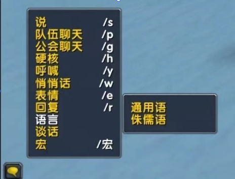 PS:如果修改对立种族之后,聊天提示,你不会这个语言。请在聊天框左上角的按钮中,选择语言 - 通用语