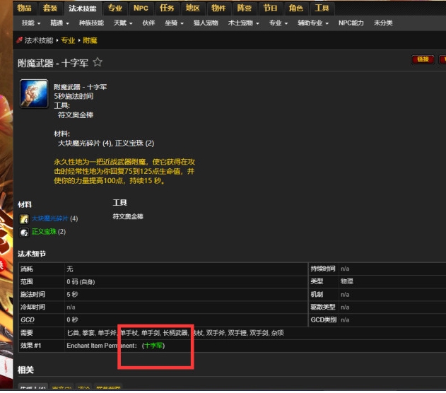 出现在地址栏中的1900就是十字军效果的enchantId